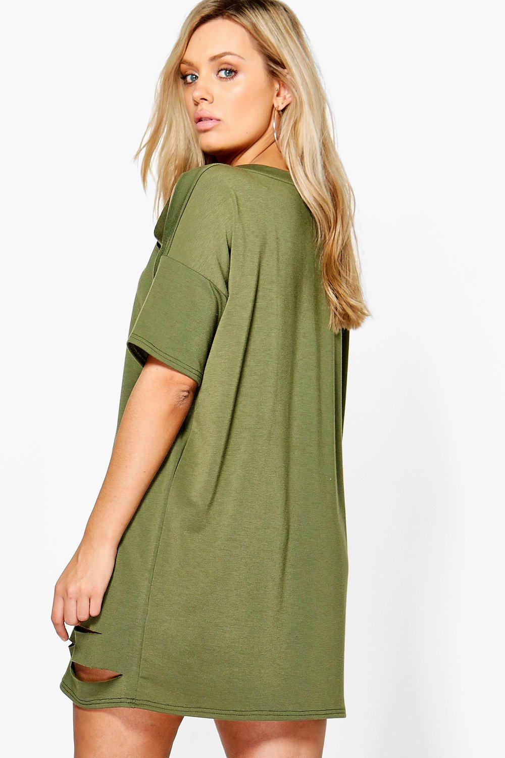Plus Annie Distressed Cut Out T shirt Dress Boohoo . Source : us.boohoo.com
